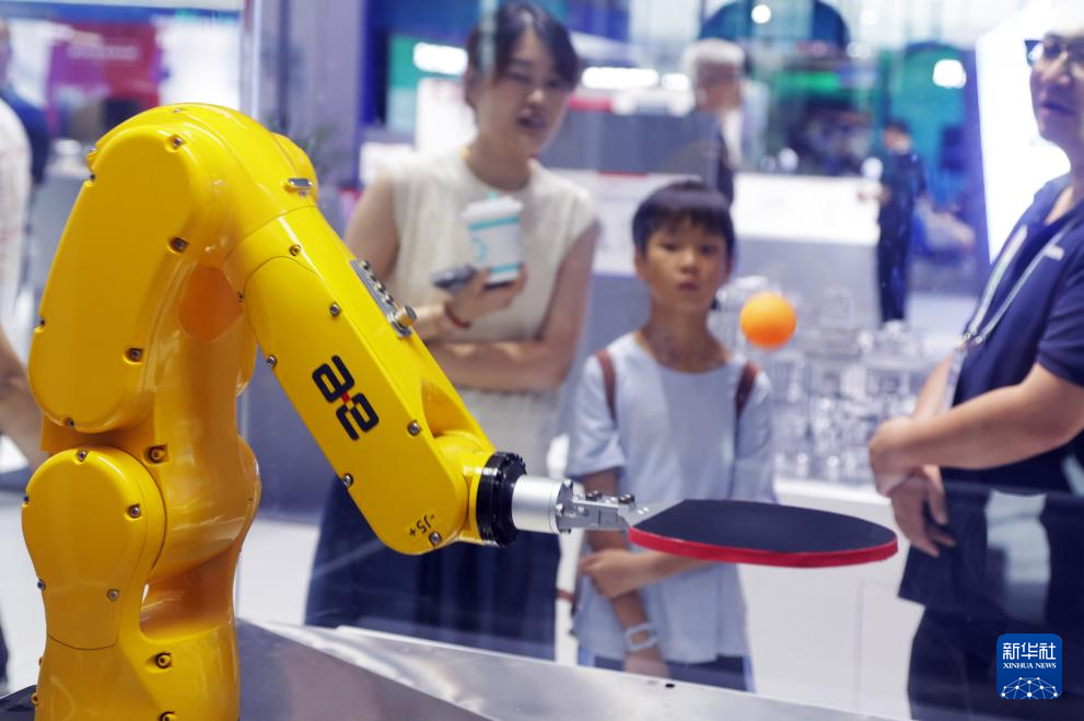 7月14日,觀眾在科博會上觀看一款運動機器人。