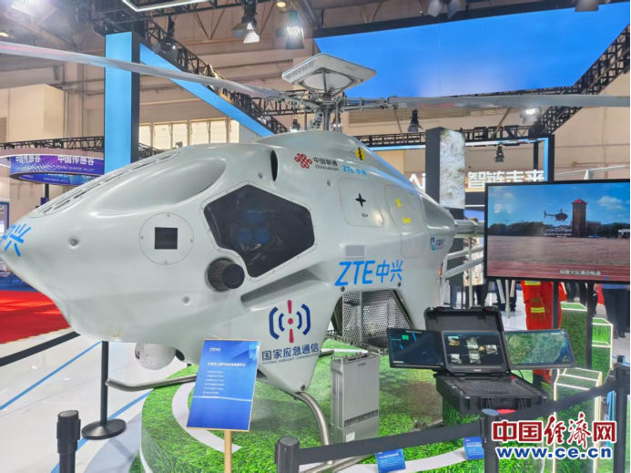 數字科技鏈展區大型無人直升機應急救援平臺。中國經濟網記者王婉瑩/攝