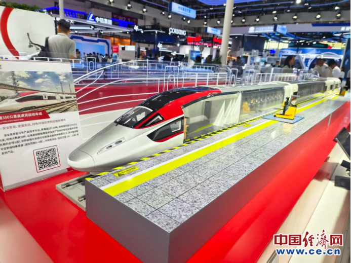 中國中車展示的時速350公里貨運動車組。中國經濟網記者王婉瑩/攝
