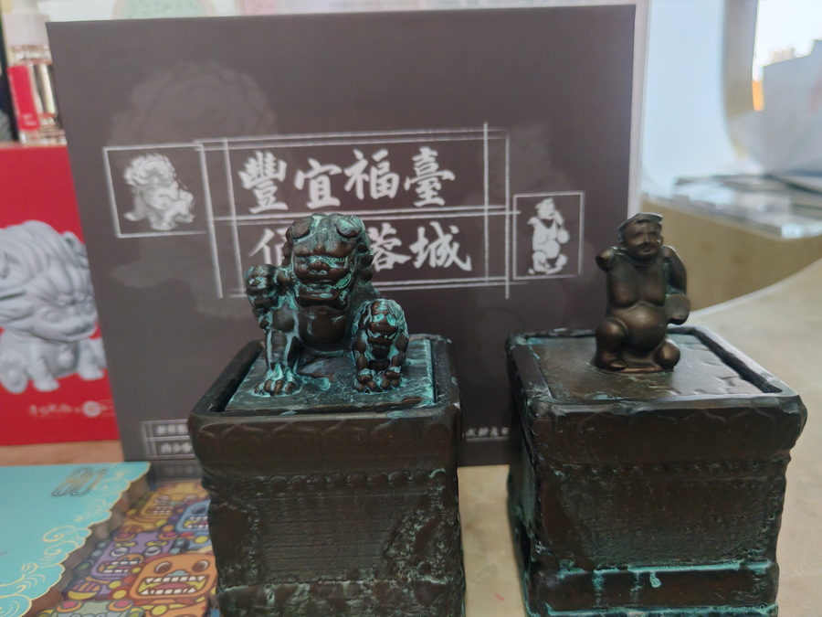 豐臺展區展示的盧溝橋獅子和成都微笑俑形象的聯名香薰蠟燭。中國經濟網記者楊秀峰/攝
