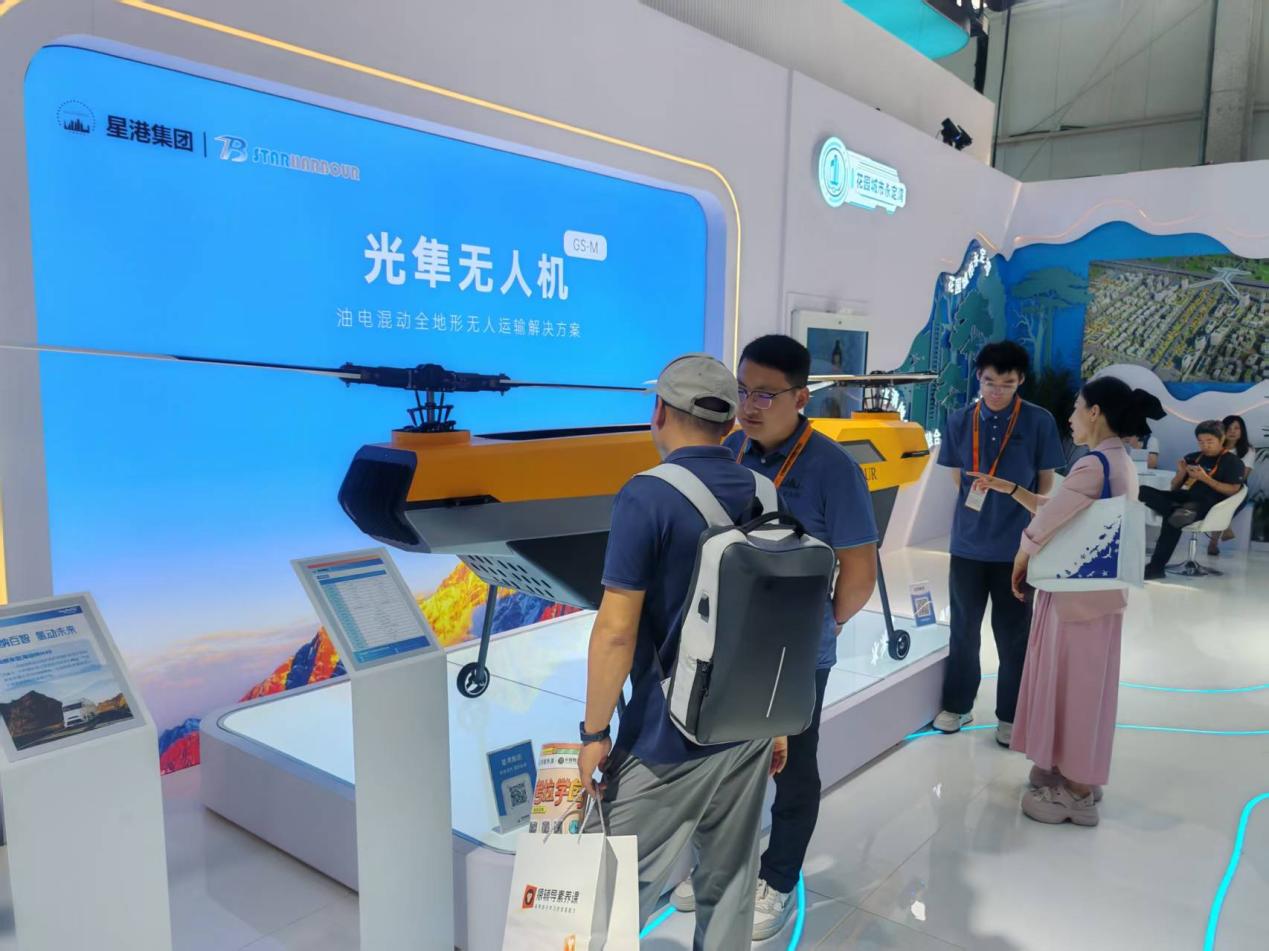 大興展區展出的光隼無人機具有應急救援、風力發電扇葉吊裝、光伏清洗、農林噴灑等功能,最重可運送一輛家用小轎車。中國經濟網記者楊秀峰/攝