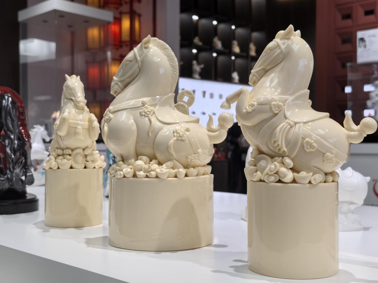 在福建“中國白·德化瓷”展館,充滿吉祥寓意的馬年系列新品瓷已提前亮相。 中國經濟網記者 魏金金/攝