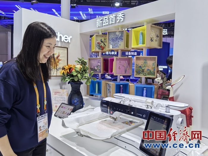 圖為“全勤生”Brother電腦繡花·縫紉一體機AVENEER EV1進博會首秀。中國經濟網記者魏金金攝