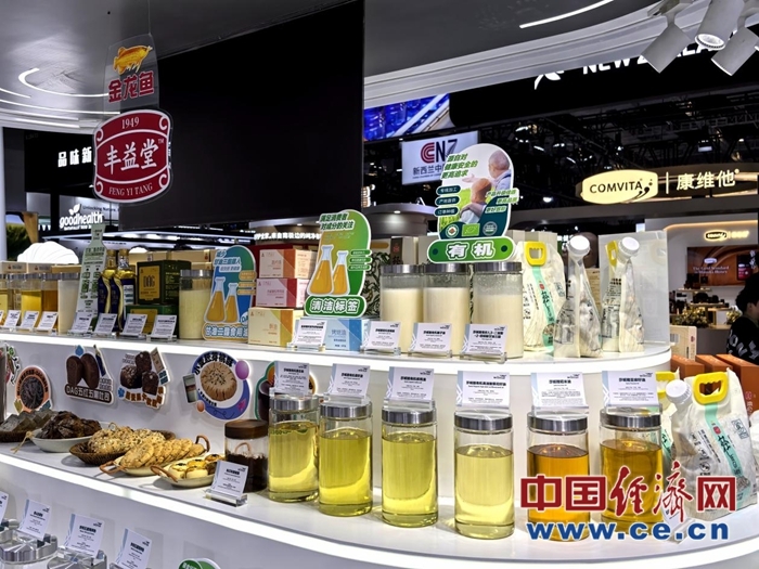 圖為“全勤生”益海嘉里首次以大健康主題亮相進博會,并推出“金龍魚豐益堂”系列產品。中國經濟網記者魏金金攝
